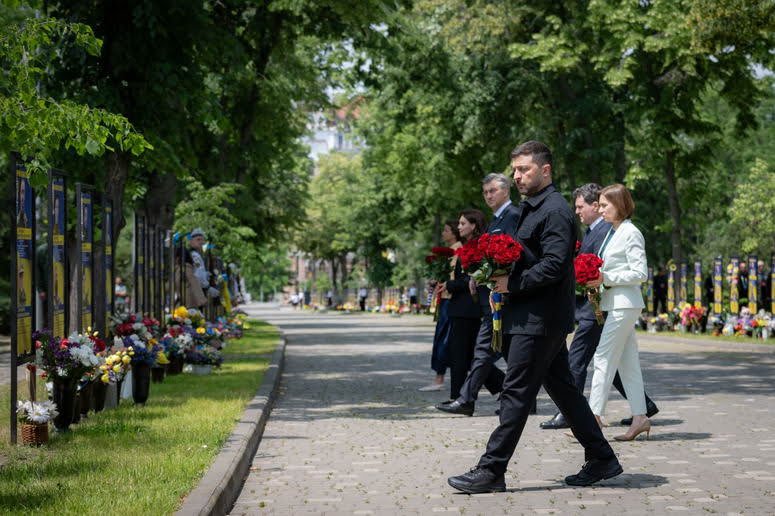 Вчера в Одессе с официальным визитом находились Президент Молдовы Мая Санду, Президент Румынии Никушор Дан, Президент Черногории Яков Милатович. Перед началом саммита «Украина Юго-Восточная Европа» почтили память павших воинов вместе с Президентом Владимиром Зеленским дипломатами других стран — Премьер-министром Греции Кириакосом Мицотакисом, Премьер-министром Хорватии Андреем Пленковичем, Премьер-министром Болгарии Росеном Желязковым, спикером парламента вице-премьер-министром Северной Македонии Изетой Меджити и вице-премьер-министром — министером иностранных и европейских дел Словении Таней Файон .