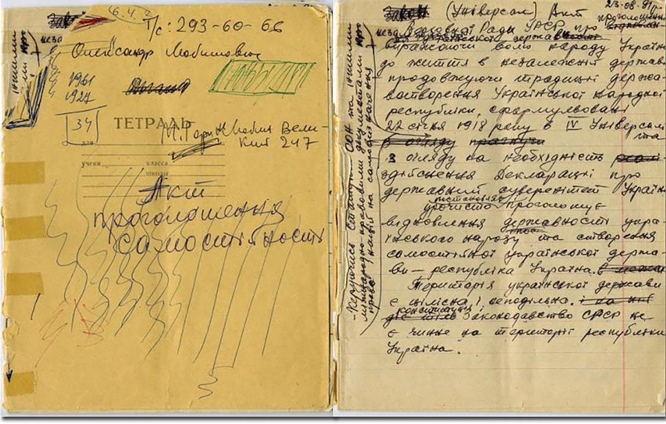 Пока шло обсуждение этого предложения Юхновского с Кравчуком, мы редактировали окончательный текст. Была лишь одна поправка от Дмитрия Павлычко относительно преамбулы, а именно: "Исходя из смертельной опасности, которая нависла была над Украиной в связи с государственным переворотом в СССР 19 августа 1991 года..."