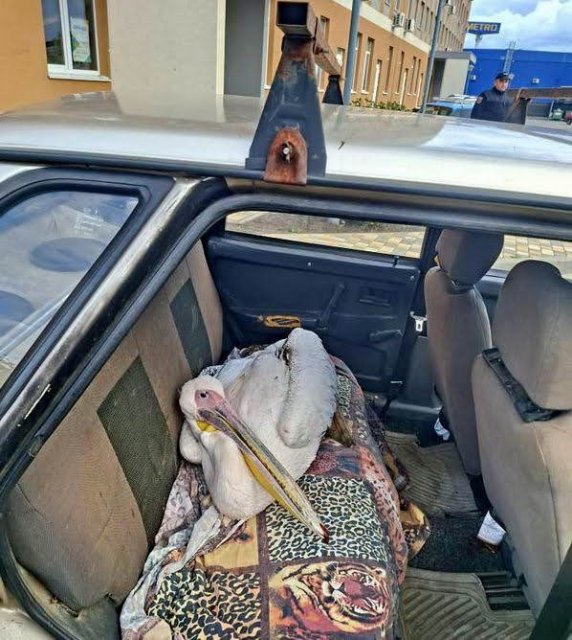 На минувших выходных в Одессе в Лузановке заметили большую птицу прямо на парковке супермаркета. Это был хромающий пеликан, не мог летать и был очень обессилен. Неравнодушным к ситуации и животному оказался местный охранник Вячеслав. Он посадил птицу в машину и отвез в зоопарк, где его принял директор заведения Игорь Биляков. Раненой птицы присмотрят, накормят, а когда она поправится – ее отпустят на свободу.