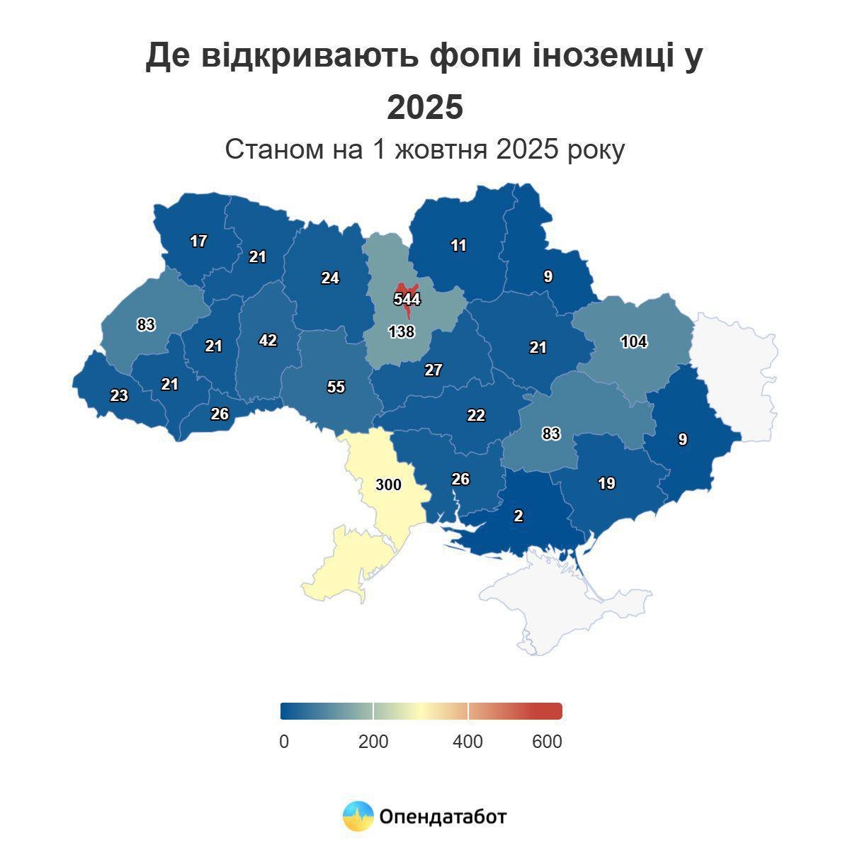 Одесская область остаётся одним из самых популярных регионов для иностранного бизнеса после Киева. За 9 месяцев 2025 года здесь появилось почти 300 новых ФОП, открытых иностранцами. Это около 18% от общего числа таких регистраций в Украине. Об этом свидетельствуют обновленные данные «Опендатабот».