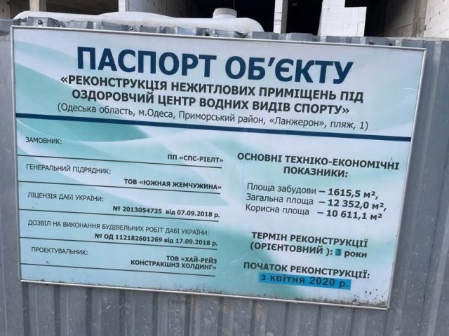 23 сентября состоялось комиссионное обследование объекта и составлен соответствующий акт комиссионного обследования. Владельцу выдали разрешение на «Реконструкцию нежилых помещений под оздоровительный центр водных видов спорта». Согласно документации – здание должно быть 8-этажным. Земельный участок Одесская мэрия предоставила в аренду на 10 лет для эксплуатации и обслуживания оздоровительного центра. Но на самом деле владелец строит новое здание — это не реконструкция, а также построил уже 12 этажей вместо 8. В Одесские мэрии запланировали принятие мер государственного архитектурно-строительного контроля на вышеупомянутом объекте строительства относительно заказчика строительства, генерального подрядчика и генерального проектировщика. Что это значит – достоверно неизвестно. Потому что могут выписать штраф, а могут заставить снести лишние этажи или все здание. Но отметим, что в Одессе еще не было случаев, когда вынуждали нарушителей демонтировать такие вот построенные объекты по сомнительным документам.