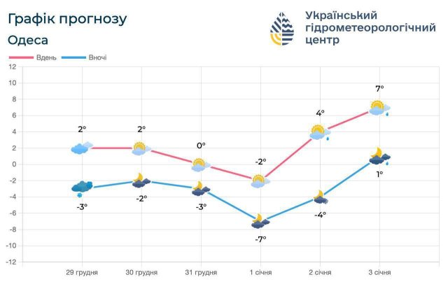 В останні дні року погодні умови на Одещині та вздовж морського узбережжя будуть під впливом поля зниженого тиску, повідомляє Гідрометцентр Чорного та Азовського морей.