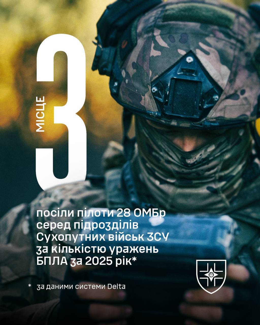 У щоденних боях на одному з найскладніших напрямків фронту ми не ламаємось і не опускаємо руки — ми демонструємо рівень. І статистика «Дельти» це підтверджує. 3 місце серед Сухопутних військ ЗСУ і ТОП-13 серед усіх підрозділів СОУ (а їх близько 500) за увесь 2025 рік. А також - 5 місце і ТОП-15 у грудні відповідно.