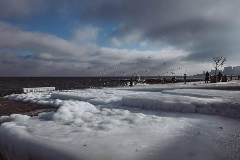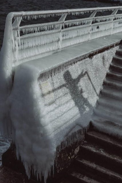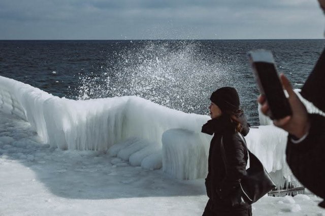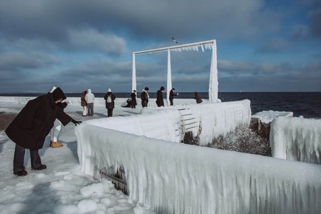 Вже близько тижня в Одесі триває морозна погода, яка призвела до утворення товстих шарів льоду. Одесити гуляють біля морю і фотографуються на фон незвичних арктичних пейзажів. Фото з пляжу опублікувала одеська фотографиня Світлана Корольова в Фейсбуці.