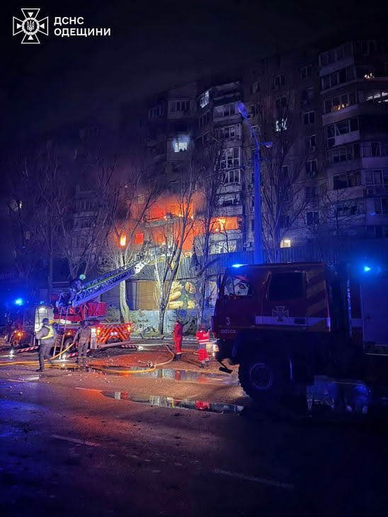 Минувшей ночью россия атаковала Одесский район более 50 тяжелыми ударными дронами-камикадзе. В Одессе в результате умышленных террористических атак россии по гражданским жителям разрушены несколько домов, а повреждены десятки. В ГСЧС сообщили, что наибольшие разрушения получил 4-этажное здание в центре города — там разрушены бетонные перекрытия со 2 по 4 этажа. Также уничтожены несколько квартир в 9-этажном доме – там начались пожары. Повреждена церковь, детский сад, лицей, фитнес-центр, частный транспорт.