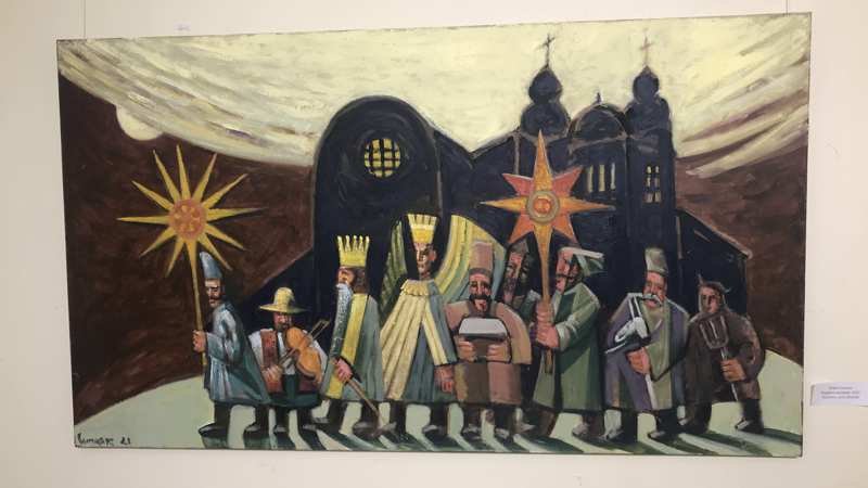 – «Срібне сяйво зими» запам’ятається ще й тим, що тут було представлено різні стильові напрямки, – каже Михайло Поживанов. – Так, Народний художник України Михайло Сипняк захопив відвідувачів своєю різдвяною тематикою. Загалом творчий доробок Михайла Сипняка складає кілька тисяч робіт, серед яких є серії, які особливо до вподоби шанувальникам – «Вертепи», «Чумаки».