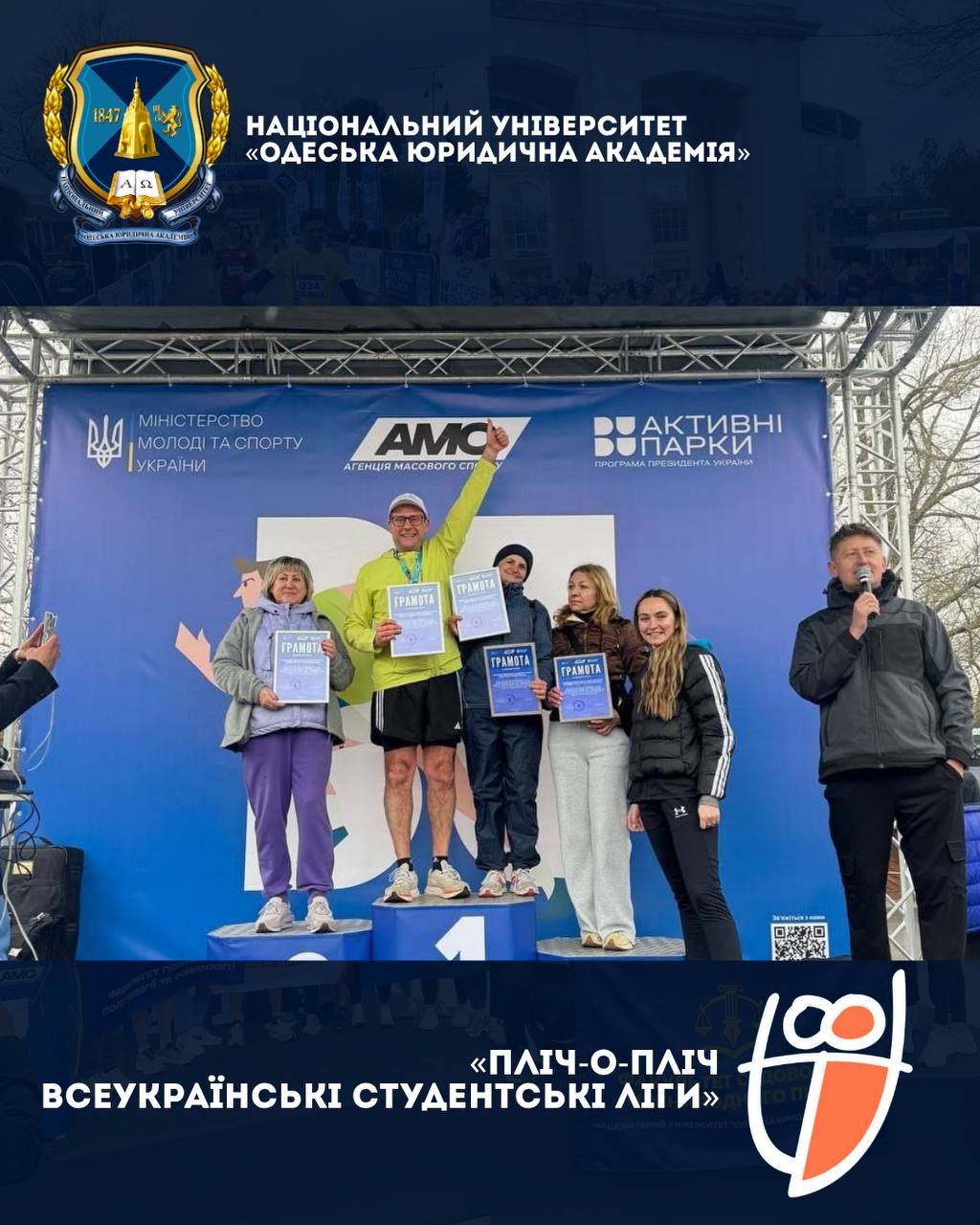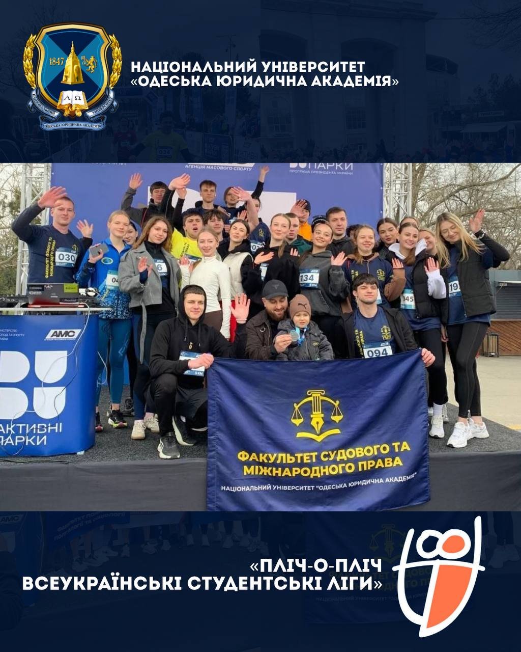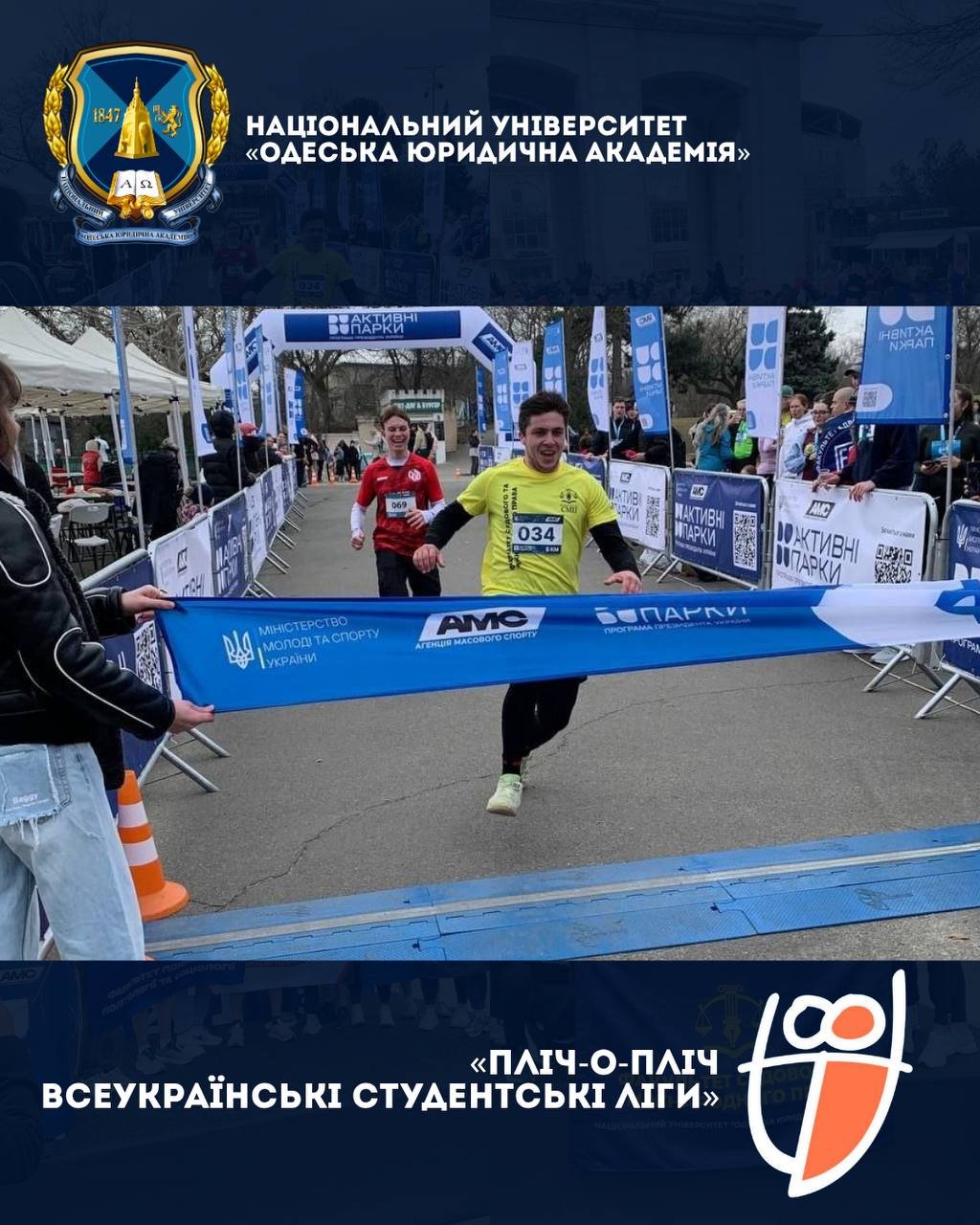 21 березня колектив Національного університету «Одеська юридична академія» взяв участь у фізкультурно-оздоровчому заході «Забіг Одещина», який передував старту Першого сезону Всеукраїнського турніру «Пліч-о-пліч всеукраїнські студентські ліги».