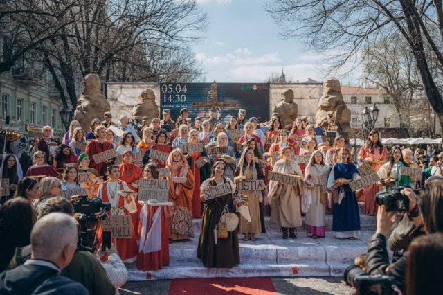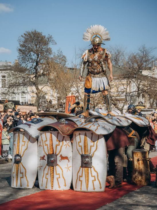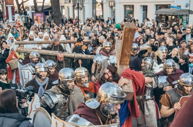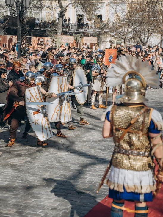 В минувшие выходные в Одессе состоялась 13-я «Пасхальная реконструкция». Мероприятие не анонсировалось заранее в целях безопасности участников. 4 и 5 апреля на Дерибасовской появился древнеримский лагерь, где можно было увидеть быт легионеров, монетный двор, античный салон красоты и суд над Христом под открытым небом. В историко-театрализованном событии «Пасхальная Реконструкция» приняли участие более 300 участников.