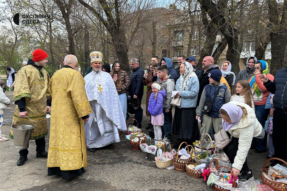 На Великдень в Одесі люди прийшли до Свято-Троїцького храму ПЦУ, передає Суспільне.