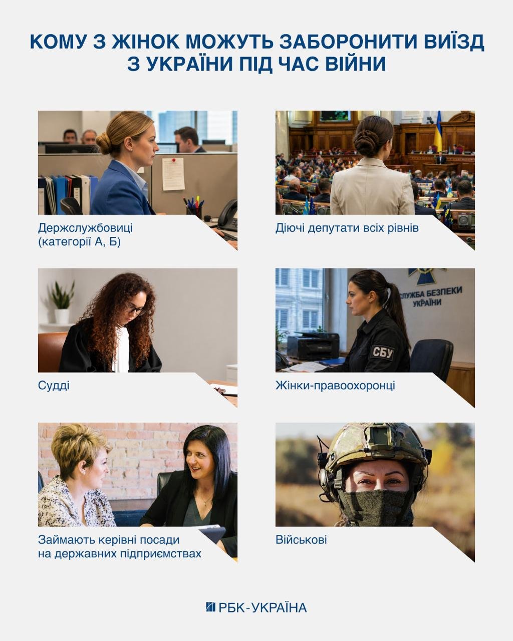 Загальної заборони на виїзд для жінок в Україні немає, але певні категорії громадянок, здебільшого за професіями і посадами, все ж підпадають під обмеження. Як прикордонники дізнаються про посаду жінки, якщо при виїзді та в'їзді вона показує лише паспорт?
