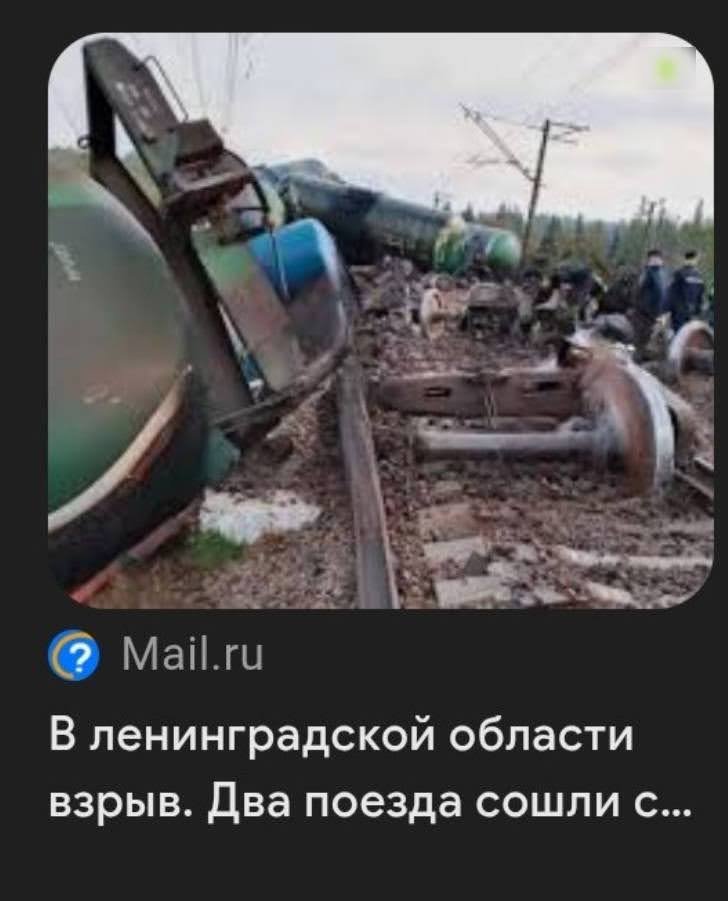 А вот цистерны лежат на фоне типичного русского пейзажа – леса из сосен. Выяснилось, что это фото из происшествия, когда поезд действительно пустили под откос, но есть нюанс. Это сделало украинское подполье в России. Событие произошло в Ленинградской области 14 сентября 2025 года.