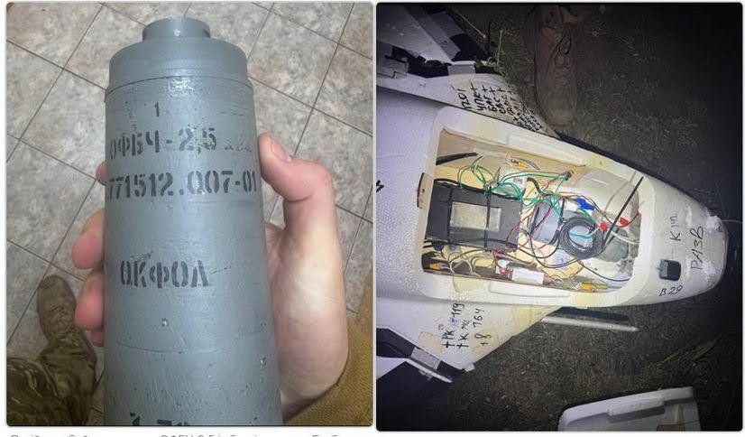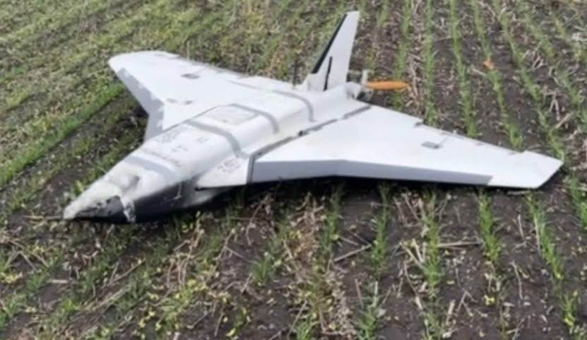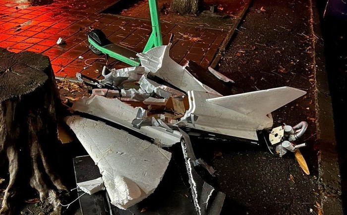 Как выяснилось – это дроны-приманки «Гербера» для перегрузки ПВО. Они сделаны из очень дешевых материалов. Как можно увидеть по обломкам – из пенопласта. Но в последнее время военные все чаще фиксируют в них боевую часть весом в 5 килограммов. Подходить к таким дронам после падения может быть опасно.