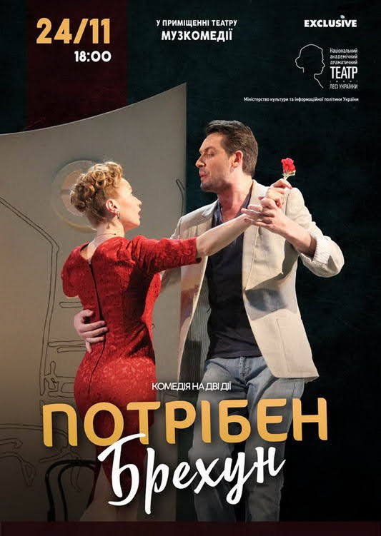 Национальный академический драматический театр имени Леси Украинки привозит в Одессу спектакль «Нужен лжец!», который покажут 24 ноября в помещении театра Музыкальной комедии.