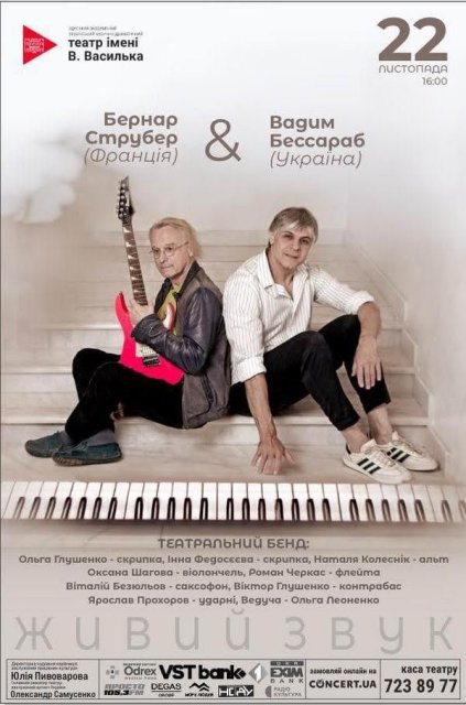 22 ноября в 16:00 Украинский театр зажжет сердца зрителей концертом, который нельзя пропустить. Впервые на большой сцене тетара — Бернар Струбер! Французский органист, гитарист и джазмен, выросший между церковным органом, роком и джазом, привезет в Одессу свою музыкальную магию.