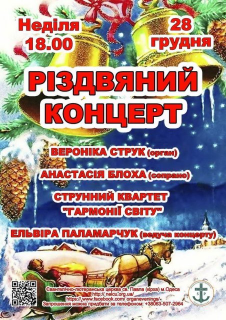 Уважаемые дамы и господа, милые одесситы и гости нашего города, приглашаем Вас на заключительный концерт 2025 года Органных вечеров в Кирсе! В продолжении Рождественских концертов любимые музыканты Одессы подготовили трогательную программу, чтобы вместе с нами провести этот год и в надежде лучше встретить грядущий 2026 год. Приглашаем Вас вместе праздновать, мечтать и наслаждаться невероятными шедеврами классической музыки!