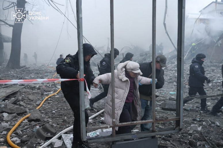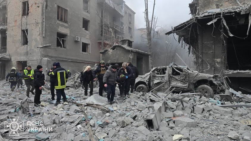 Сегодня 2 января около 14:30 российские оккупанты нанесли ракетный удар по центру Харькова. Как сообщили в Офисе генерального прокурора, две баллистические ракеты разрушили 4-этажный жилой дом и часть животноводческого здания. По состоянию на 18:00 известно о 31 пострадавшем лице, из них один ребенок (младенец). Всего спасены 12 человек. Как сообщили в ГСЧС, возник пожар отдельными очагами, общей площадью около 200 кв.м. На месте ударов работают спасатели, представители всех экстренных служб. Под завалами могут находиться люди, ведется поисково-спасательная операция.
