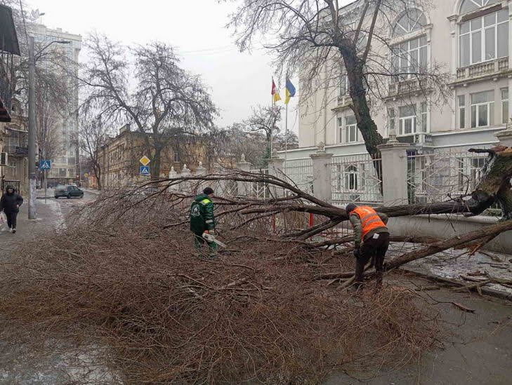 По информации Коммунального предприятия «Горзелентрест», по состоянию на 18:00 из-за непогоды в Одессе свергнуто 39 деревьев и крупных веток. Некоторые из них упали на автомобили и повредили. Озеленители КП «Горзелентрест» оперативно приступили к работе по ликвидации последствий непогоды. Сотрудники КП «ЖКС» также проводят работы по ликвидации последствий непогоды на подчиненных территориях. Коммунальщики производят распил сваленных деревьев и их вывоз. В первую очередь коммунальщики освобождают от сваленных деревьев дороги, автомагистрали, пешеходные дорожки, а также убирают деревья, мешающие проезду к социально значимым объектам.