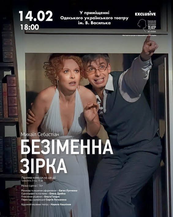 Киевский Национальный академический драматический театр имени Леси Украинки везет в Одессу лирическую комедию «Безименная звезда» по пьесе румынского драматурга Михаила Себастиана. Спектакль покажут 14 февраля в 18.00 в помещении Украинского театра. Однажды в весеннюю ночь в заштатном провинциальном городке Румынии неожиданно остановился столичный экспресс-поезд, который всегда направлялся мимо. В поезде ехала необычная пассажирка, у которой не было билета. Волей судьбы на том же вокзале оказался молодой человек, талантливый учитель космографии, заскочивший к начальнику вокзала забрать долгожданную книгу. Наверно, в ту ночь звезды сошлись так, чтобы эти двое встретились! Она – Мона, изысканная красавица в волшебном вечернем платье. Он – Марин Мирой – романтический философ, с очаровательной улыбкой и талантом увлечь собеседника своей наукой. Да, в ту ночь звезды сделали свое дело, все сложилось лучше! А что будет на следующее утро? Удастся ли влюбленным сохранить свои чувства? В чью пользу Мона сделает свой выбор, что и кто будет управлять ею? С чем останется Марин Мирой? Он ведь убежден: «Ни одна звезда никогда не отклоняется и никогда не останавливается на своем пути».