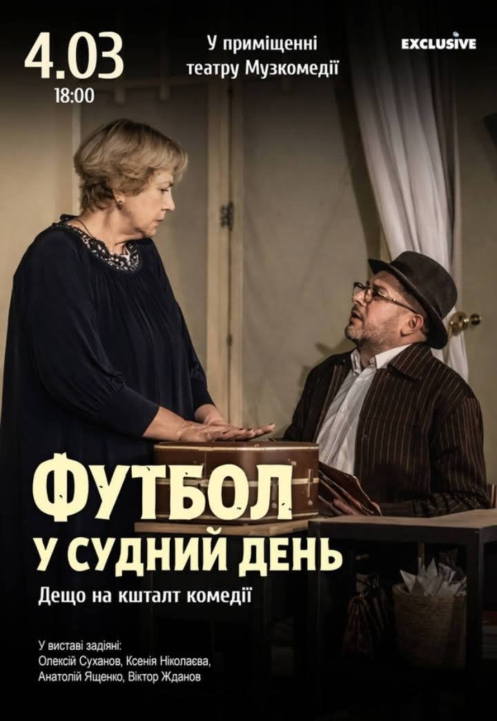 В Одессу везут гастрольное представление киевского театра «Созвездие» — «Футбол в Судный день», кое-что на сборник комедии (по пьесе «Сложные люди» всемирноизвестного драматурга Йосефа Бара-Иосефа).