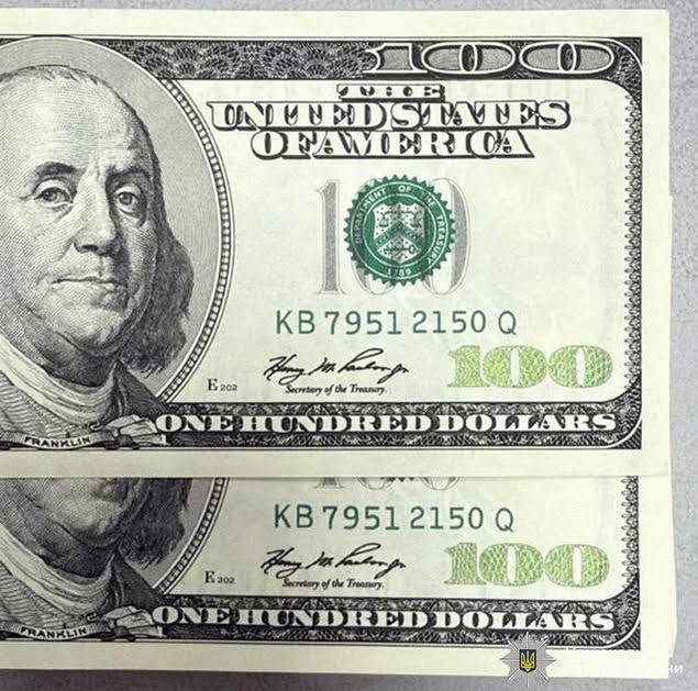 В Одессе задержали двух иностранцев, наладивших поставку фальшивых купюр валюты номиналом в 100 долларов. Как сообщили в полиции, фальшивки выглядят очень качественно и зрительно их почти невозможно было отличить от настоящих без дополнительного оборудования. В партии фальшивки имели по два одинаковых номера. В Одессе их перепродавали другим мошенникам за 30% от номинала.